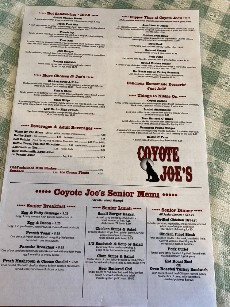 Whether you're stopping by for a quick breakfast or a leisurely brunch, Coyote Joe's promises to leave you satisfied and eager for your next visit.